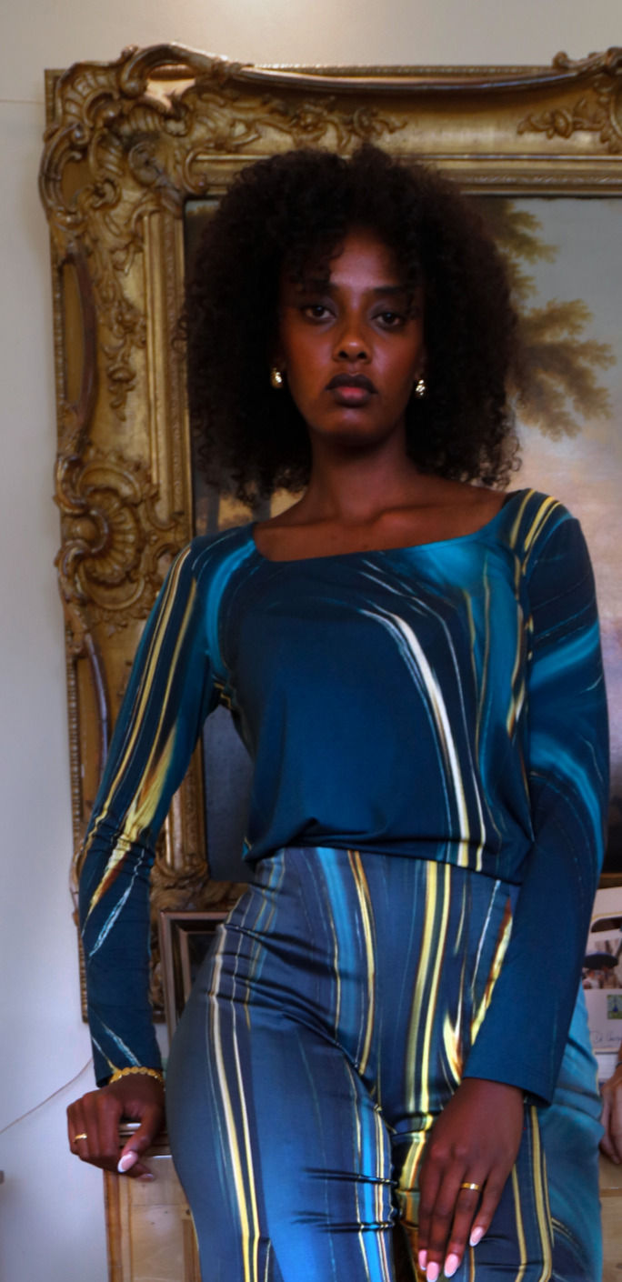 Das edle Material aus Bio-Baumwole verleiht der Hose eine edle Note, der elastische Bund macht sie super bequem, so dass die Hose definitiv zum Beinschmeichler wird. Der Bindegürtel ist ein schöner Akzent.