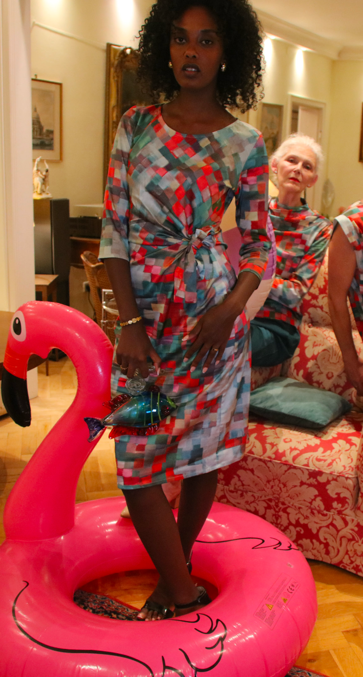 Sophia Schneider-Esleben transformiert die Chips, in den Trendfarben der kommenden Saison, in Originalgröße auf BioBaumwolle für ihre EcoKollektion im Mix aus TechnoStyle, klassischen Schnitten und raffinierten Linien.